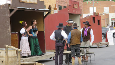 講真,我都唔知佢地搞的乜!我剛從旅遊巴士落地即到餐館附近的橫街,看見路旁擺了很多椅子,但街的中心未有人物與擺設。我和團友吃飽晚餐在返回巴士時,領隊給我們15分鐘去看熱鬧,見到所有椅子坐滿人。看樣子是上演上世紀的警匪片,有間小屋的頂寫-JAIL. 表演時看見演員在追逐,跟着聽到槍聲。