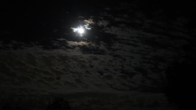 11月1日零晨我們需要把時針撥慢一小時。我在午夜一點多醒來撥開窗簾, 竟見銀光瀉地, 於是我立即拿着相機跑出前園, 即見漂亮的白雲襯托着皎潔的月亮。拍了幾張照片後, 我睡意還濃, 只好上床再去尋夢。